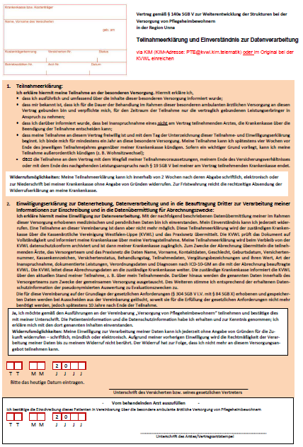 Drucken Sie sich gerne die Teilnahmeerklärung aus, unterzeichnen Sie diese und senden diese direkt an Ihre Hausarztpraxis oder an das Netzbüro.